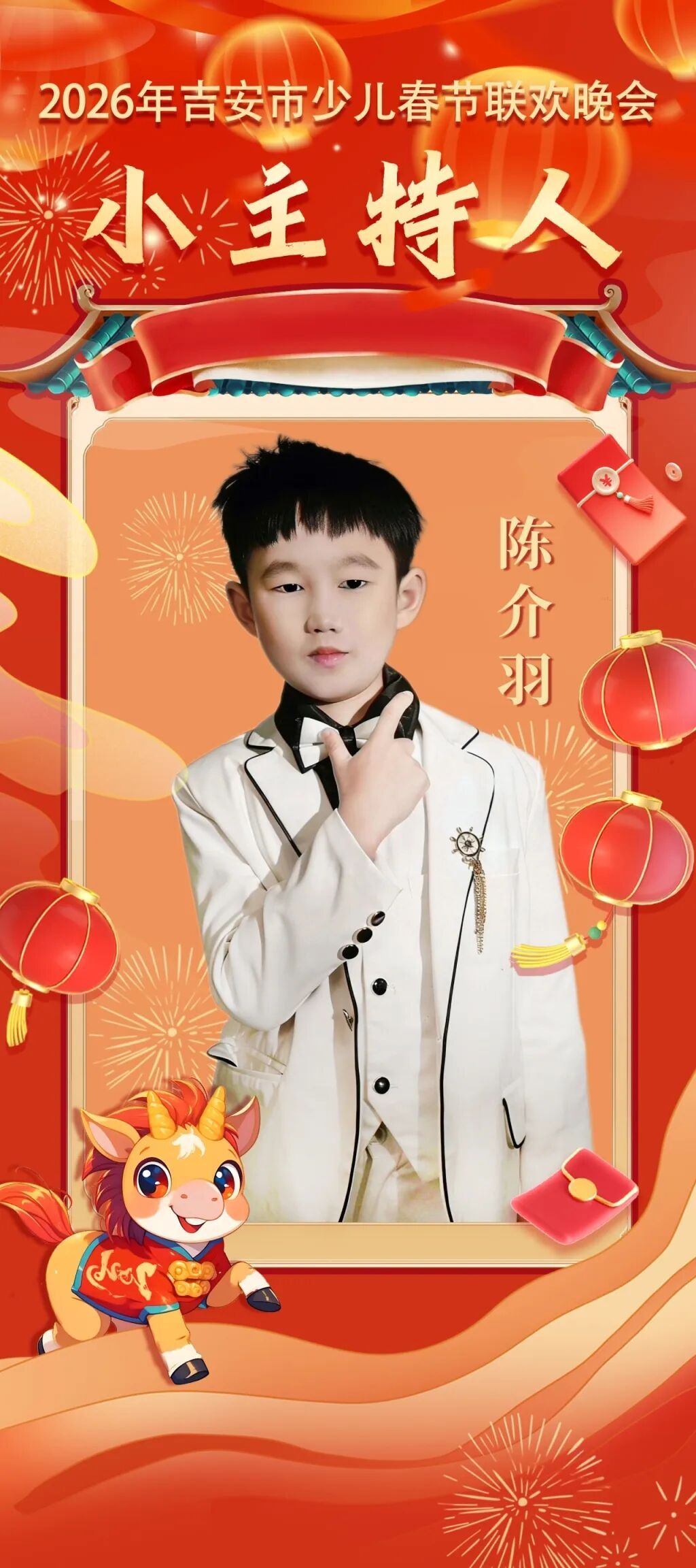 晚会精彩内容将通过吉安市融媒体中心各平台同步推送。敬请关注,第一时间获取晚会录制实况及播出信息,与小主持人们一起,期待这场萌娃们的新春大秀!