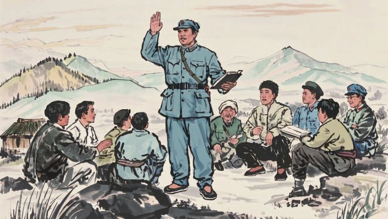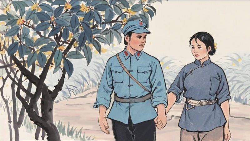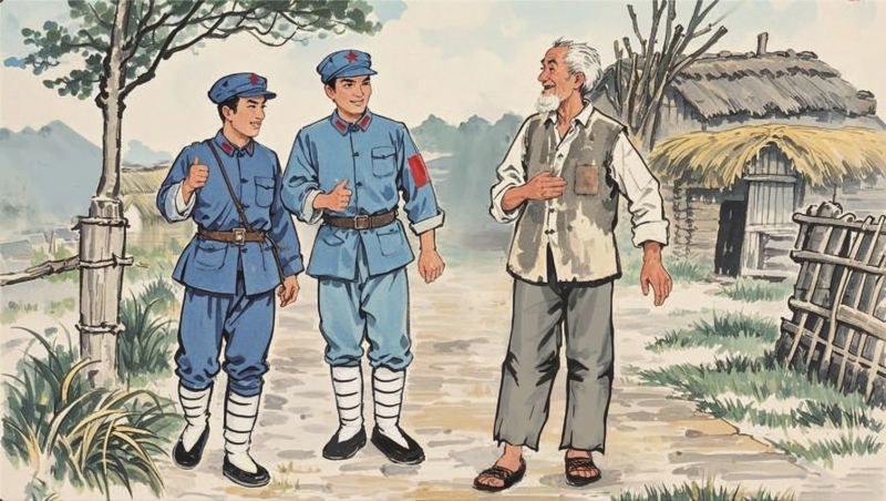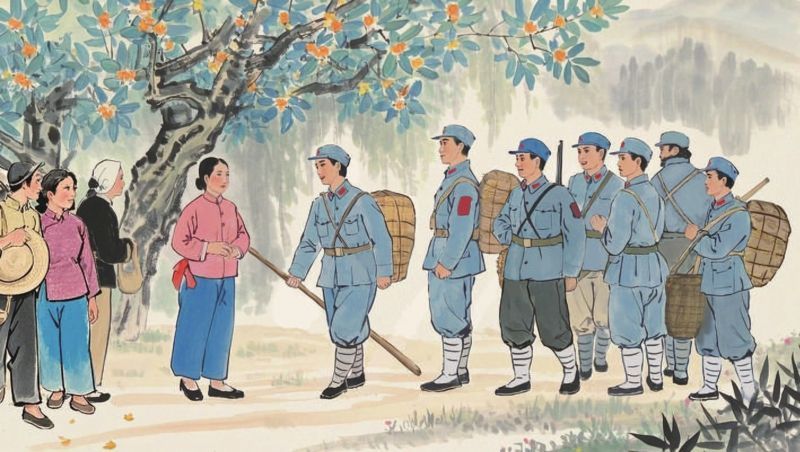 13.全村父老乡亲都来为参加红军的青年送行,“好好跟着部队,记得打胜仗。”恒慈的小媳妇泪光莹莹,小声地说:“我在家里等着你革命成功回来!”