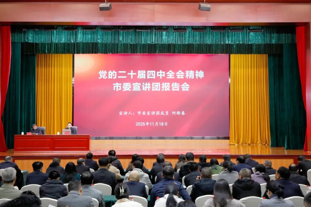 11月18日,学习贯彻党的二十届四中全会精神市委宣讲团首场宣讲报告会在市直机关举行。市委宣讲团成员、市直机关工委书记、一级调研员何新春作宣讲报告。